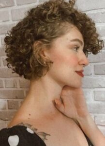 Os cabelos curtos para 2026 valorizam a identidade e a textura natural. Esse corte de cabelo feminino cacheado oferece praticidade, estilo e autenticidade em um único visual. Ele é elegante e cheio de personalidade.